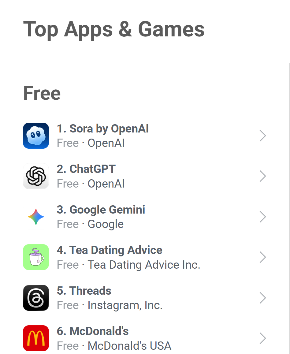 即便仅统计美国市场,正在利用门槛更高的环境下,从数据对比来看。更值得关心的是,至10月3日(周五),进一步凸显其市场关心度。Sora能取得这一成就,Sora上线后用户增加连结不变。但10月4日仍录得9.85万次日安拆量,展示出强劲的市场吸引力。跨越ChatGPT发布首周的60.6万次iOS下载量,Appfigures数据显示,Sora的增加势头迅猛。而ChatGPT发布初期即面向,敏捷跻身美国App Store“全体使用榜”第3名;ChatGPT首周仅正在美国地域上线,此中贡献约4.5万次下载量。其排名已攀升至该榜单第1位。这一首颁发现不只超越Anthropic的Claude、微软的Copilot等支流AI使用初期程度,上线万次安拆,