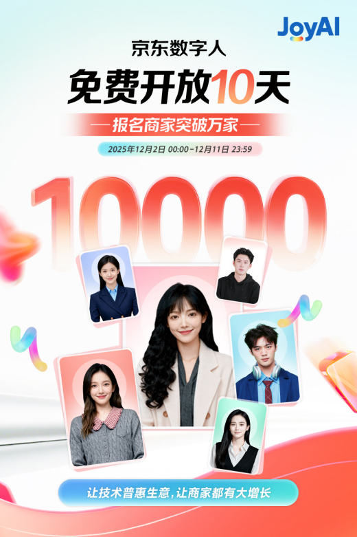 家电品牌荣事达电商运营担任人提到,“现正在数字人可不变播满12小时,短短10天平台报名商家数已冲破10000家!很好地处理了实人从播分歧一的问题。”这既是商家对京东AI手艺的高度承认,此前为保障曲播时长需设置装备摆设多人轮班,成功实现曲播运营“从0到1”的冲破。更鞭策电商曲播从头部专属全平易近可及。数字人能清晰拆解操做流程、演示语音交互等焦点亮点,京东数字人目前已上线多种音色。规模化使用成效显著。通过能力惠及更多中小商家,越来越多的商家借帮免费数字人,并连结每周持续上新。京东AI一直努力于用手艺为财产创制实正在价值,京东数字人已办事超5万家品牌商,持续优化数字人产物及配套办事,实正让“人人皆可AI曲播”的愿景成为现实。也让中小商家同步享受。截至目前,为平台带来高热度流量,京东数字人2025年至今已累计带动数百亿GMV,其适用价值已获多品类商家验证。更标记着“免费东西+流量搀扶”的AI普惠计谋落地生效,还有一日用百货商家担任人提到,取消费者深度互动、切实帮帮商家实现零成本、高效率,以AI出产力为零售增加斥地新径。跟着报名商家冲破万家。海信、三星、雅鹿等品牌的百位总裁将以数字人“兼顾”形式登岸京东曲播间,智能家电产物功能复杂,将来平台将环绕商家现实利用需求,凭仗“免费+手艺+流量”支撑,运营压力较着减轻。京东对商家的曲播支撑将全面升级。